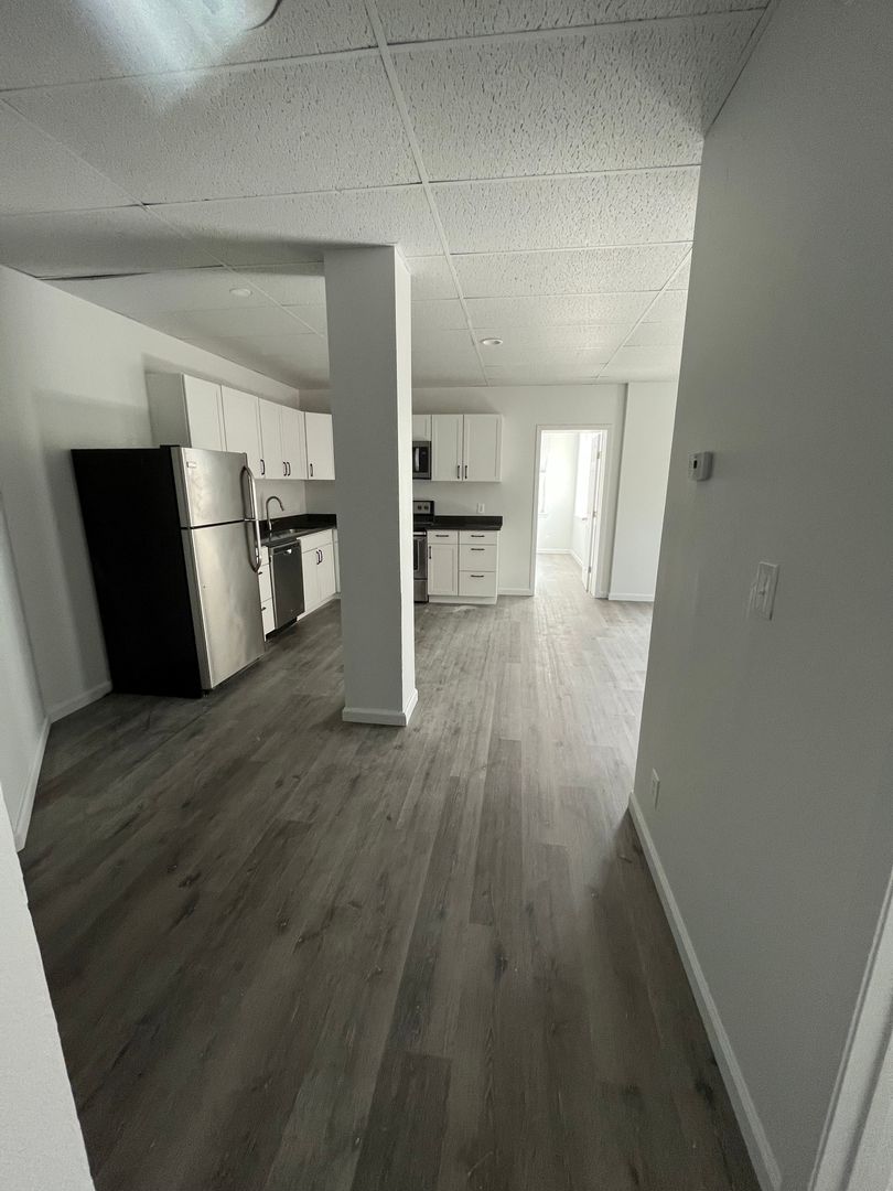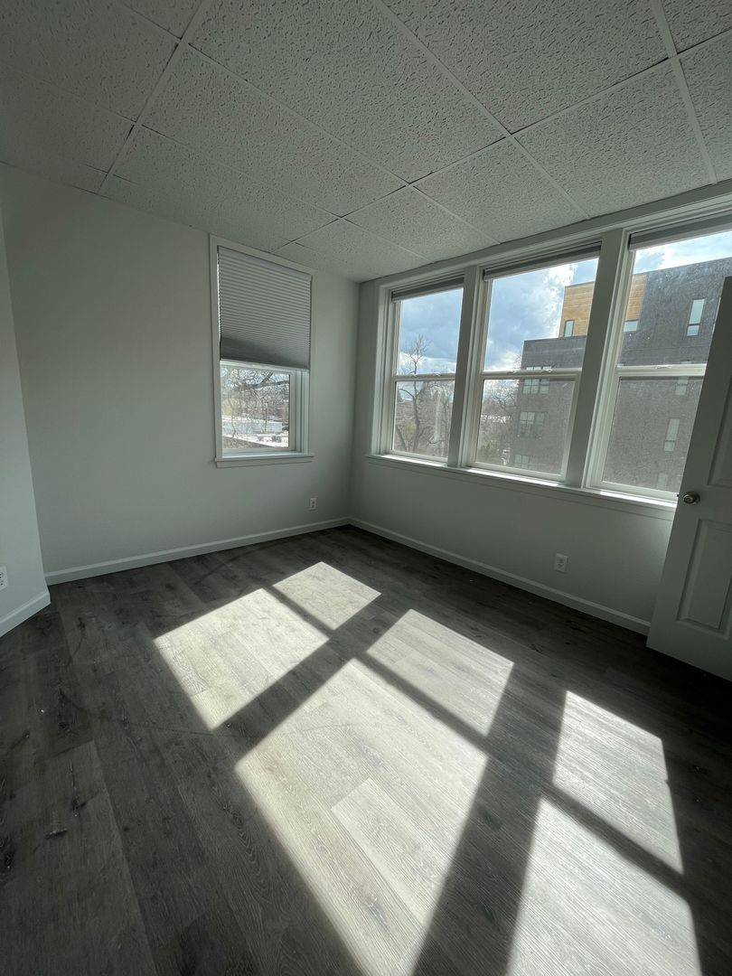One of the units available for rent is Unit 404, which is a 2-bedroom, 1-bathroom apartment that has recently undergone renovations. With 1200 sqft of space, the apartment is filled with natural light thanks to its many windows. The bedrooms are spacious enough to comfortably fit queen-sized beds. The apartment features freshly painted walls, a new kitchen with updated appliances, a renovated bathroom, new windows, and flooring. For convenience, there are two laundry rooms in the building on the 2nd and 4th floors, making it easy to do your laundry. The entry doors are secured with key fabs, and there's an elevator that makes moving in and out or transporting heavy items a breeze. We welcome pets, but kindly request that you discuss with the property manager before moving in.