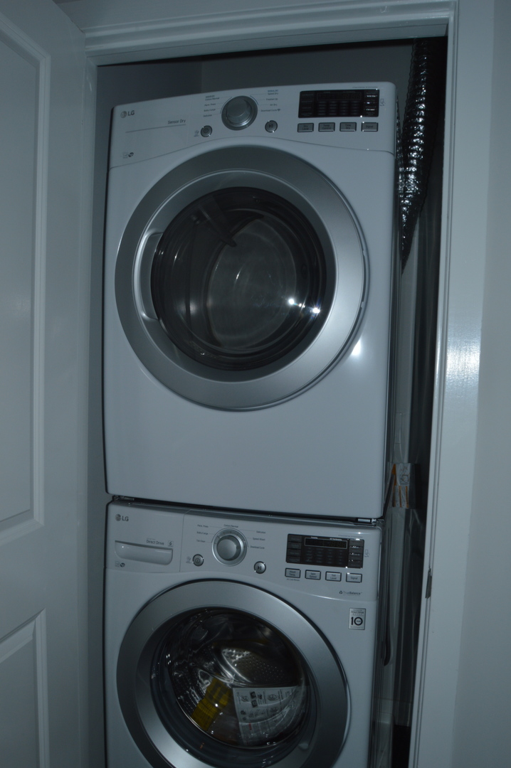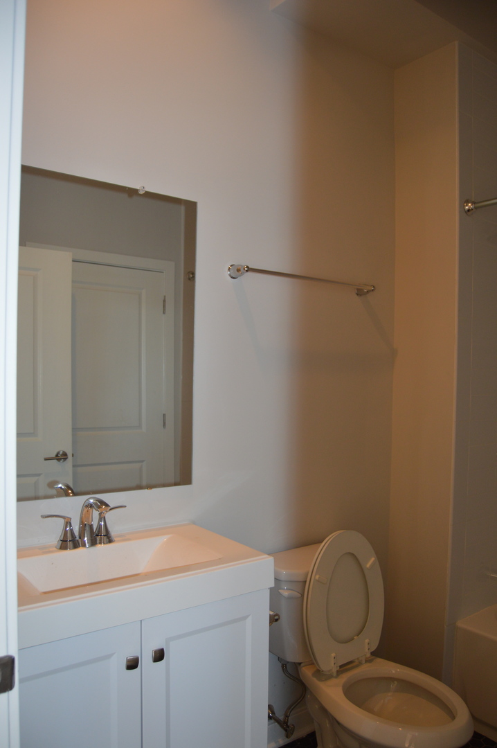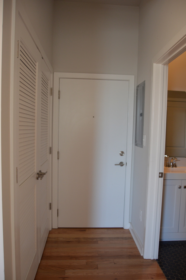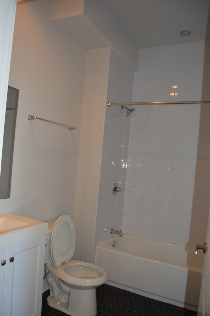 800 square foot apartment with luxury touches that include solid wood flooring, quartz countertops, and stainless steel appliances – including a dishwasher and in-unit washer and dryer. The modern bathroom includes a comfortable tub for soaking. Thanks to the tall industrial windows, this unit gets fantastic natural light, perfect for plants and pets. The windows are triple-paned for extra insulation against sound and weather. All of the units in the building are fully tenant temperature controlled, including personal water heaters.